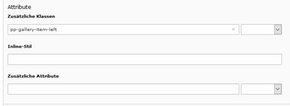 Bei der Platzierung der Bilder überhalb sowie unterhalb des Textes, werden diese horizontal zentriert. Mit der Klass "pp-gallery-item-left" oder "pp-gallery-item-right" können diese am Rand ausgerichtet werden. Mit der Klasse "pp-gallerey-item-shadow" können den Bilder Schatten zugewiesen werden.