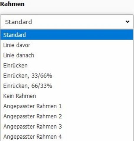 Diesem Inhaltselement wurde "Angepasster Rahmen 4" zugewiesen, welcher noch keine zusätzlichen Stilauszeichnungen aufweist.